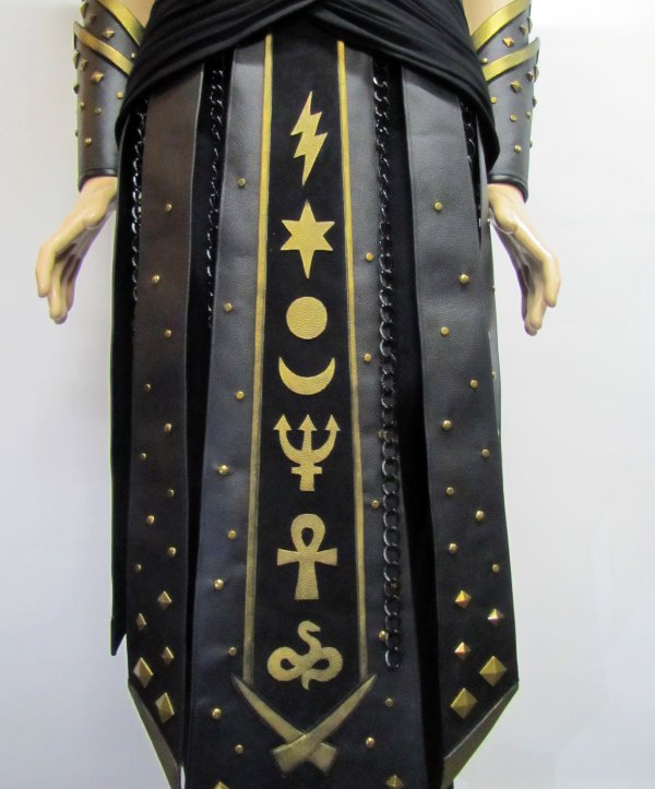 Symbolik ist in allen Kostümteilen enthalten. Die kleinen Nieten symbolisieren den Sternenhimmel, die großen Pyramidennieten erinnern an die ägyptischen Bauten. Der doppelte Aufbau der Stulpen symbolisiert Dualismus.