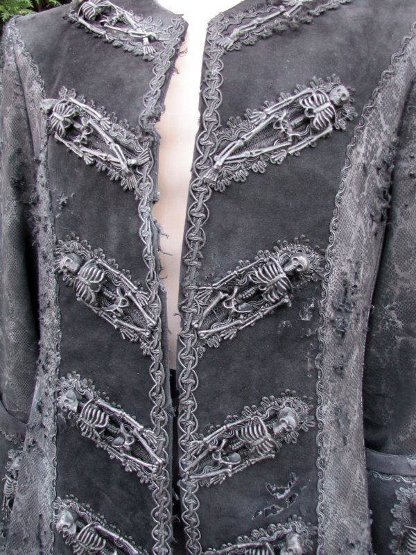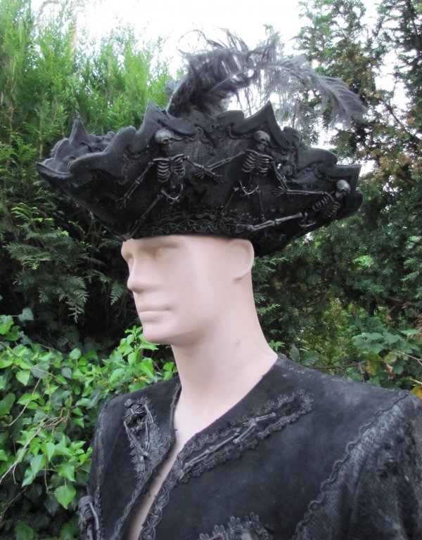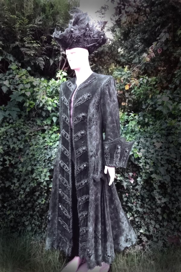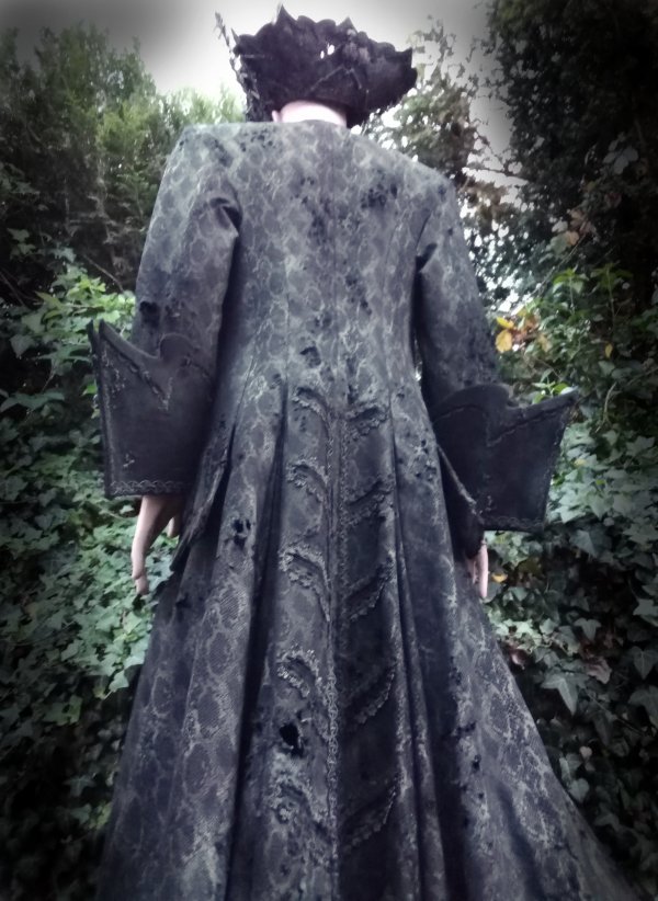 Ein barockes Outfit, Mantel und Dreispitz, in morbidem Look.
