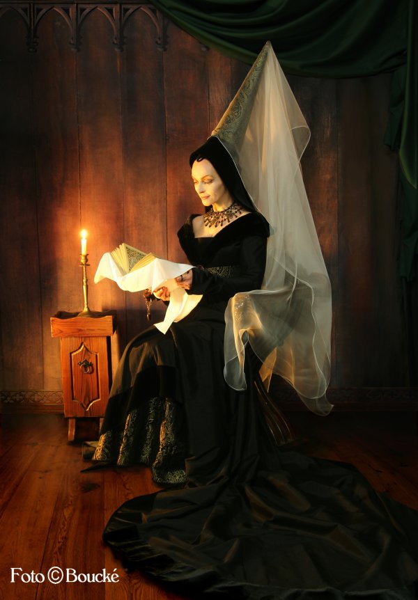 Gewandes einer spätmittelalterlichen, burgundischen Edeldame.