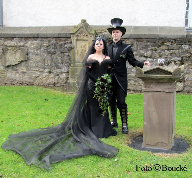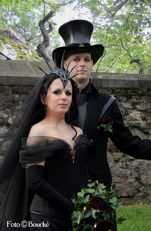 Hochzeitsgewänder und Hüte/Kopfschmuck für SINDY & UDO im Gothic Stil